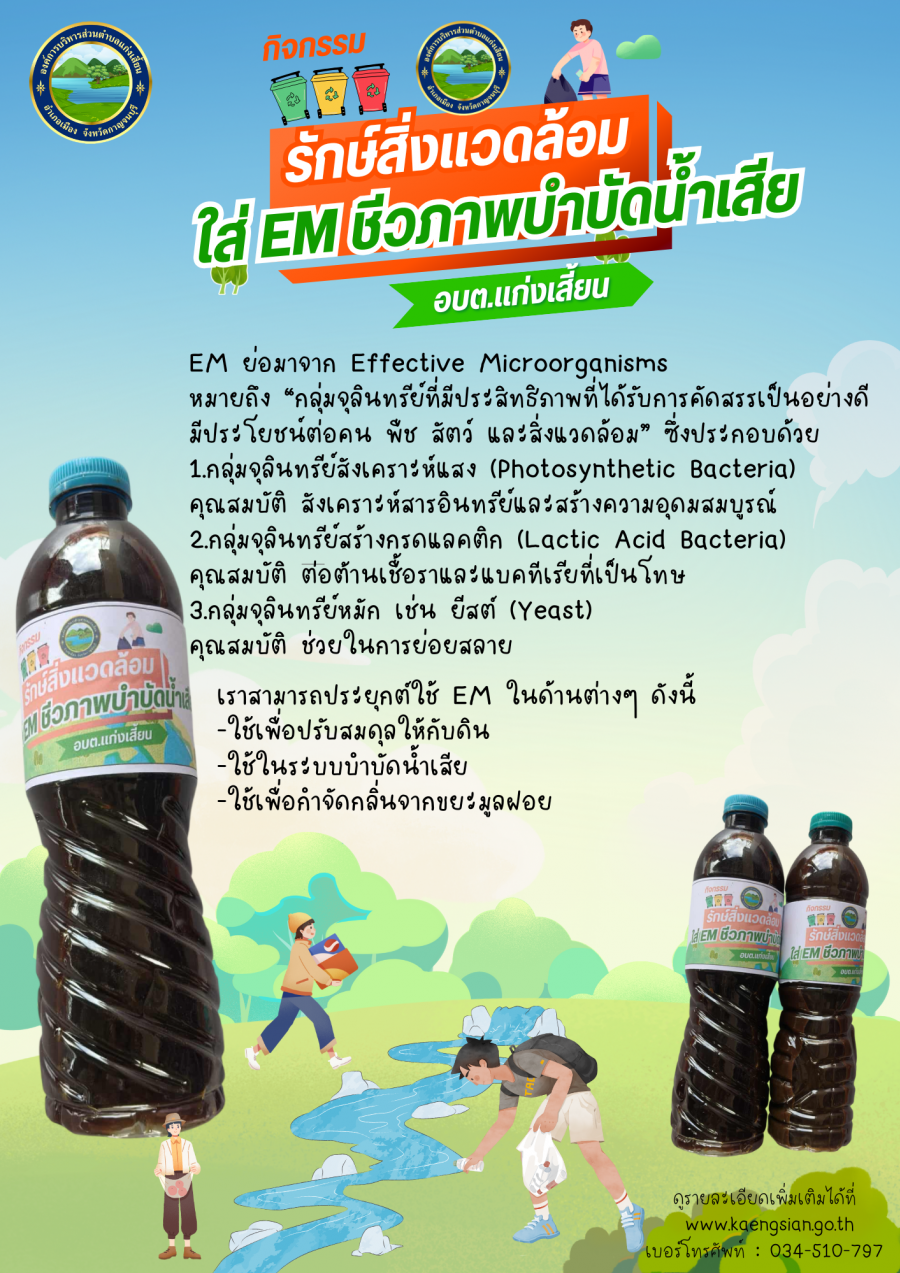 go green รักษ์สิ่งแวดล้อม ขอเชิญชวน เข้าร่วมกิจกรรมรักษ์สิ่งแวดล้อมใส่ EM บัดบำน้ำเสีย ณ บ่อขยะเชิงเขาทอง ตำบลแก่งเสี้ยน อำเภอเมือง จังหวัดกาญจนบุรี